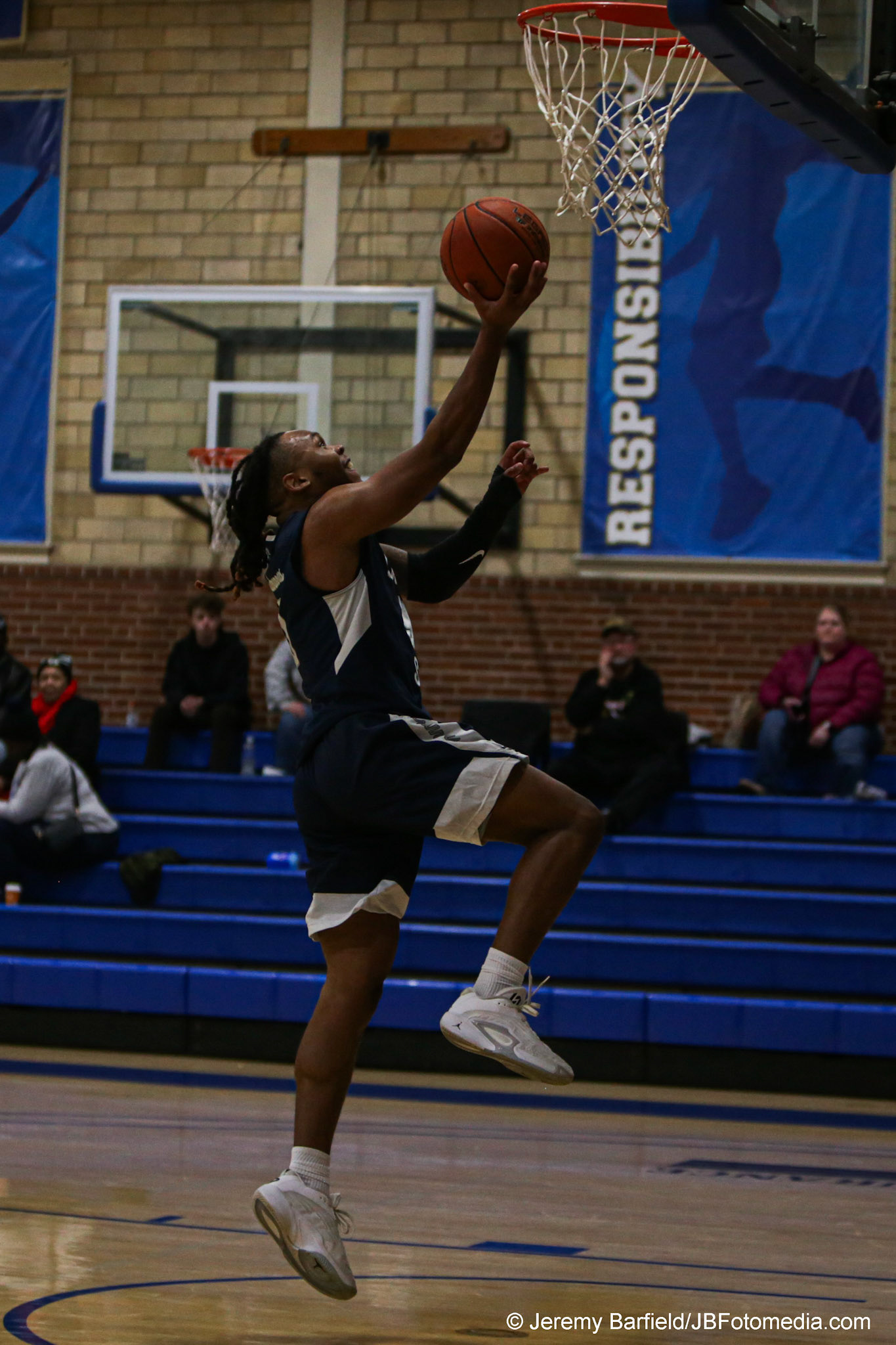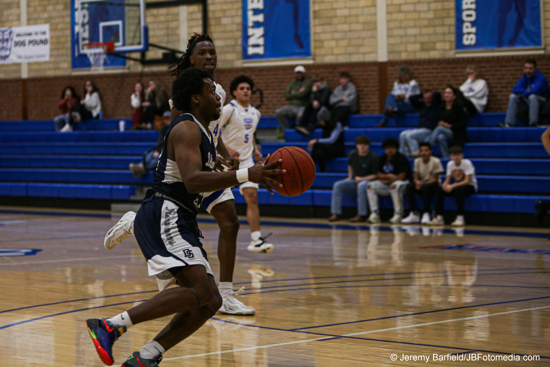 DALTON, GA - Dec 2: Matt Compas #12 of the Dalton State Roadrunners scores a dunk against University of the Cumberlands Patriots at Bandy Gymnasium in Dalton, GA. The Roadrunners defeated the #9 Patriots 88-80. (Photo by Jeremy Barfield/JBfotomedia.com)