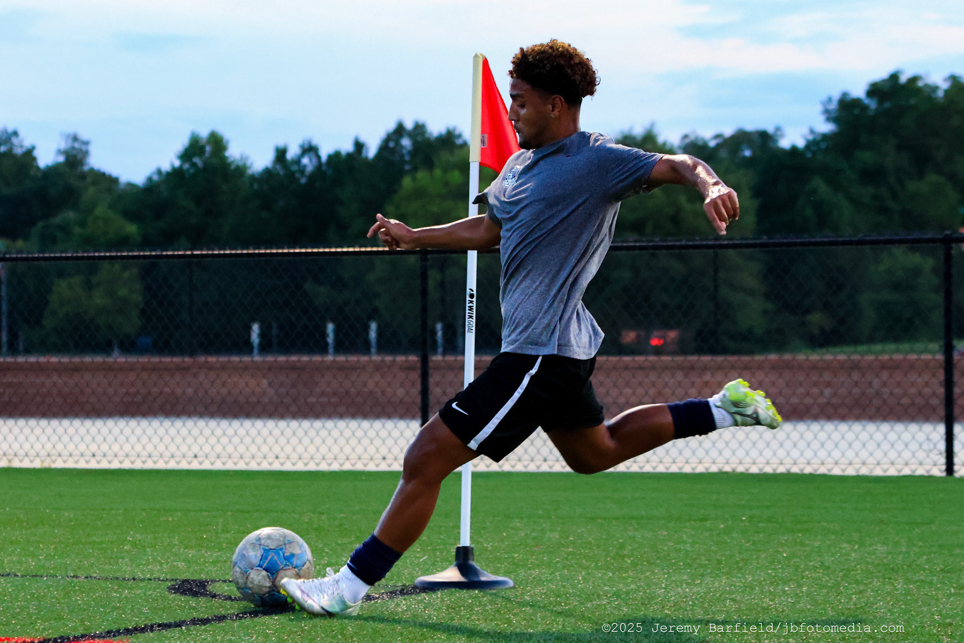 DALTON, GA - Dec 2: Kyoya Sasaki #20 of the Dalton State Roadrunners (G) drives past Matthew Cromer #23 of University of the Cumberlands Patriots (G) at Bandy Gymnasium in Dalton, GA. The Roadrunners defeated the #9 Patriots 88-80. (Photo by Jeremy Barfield/JBfotomedia.com)